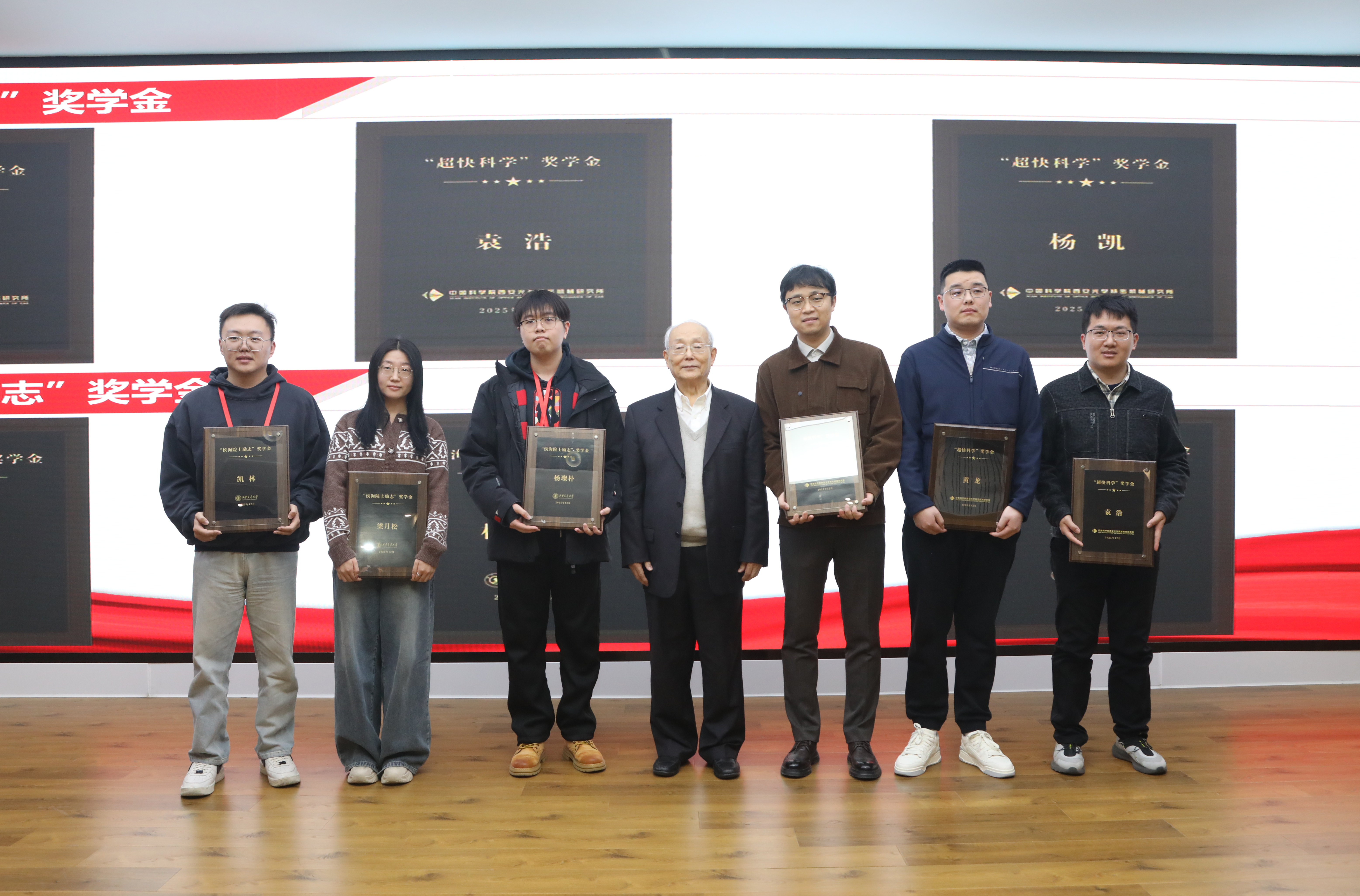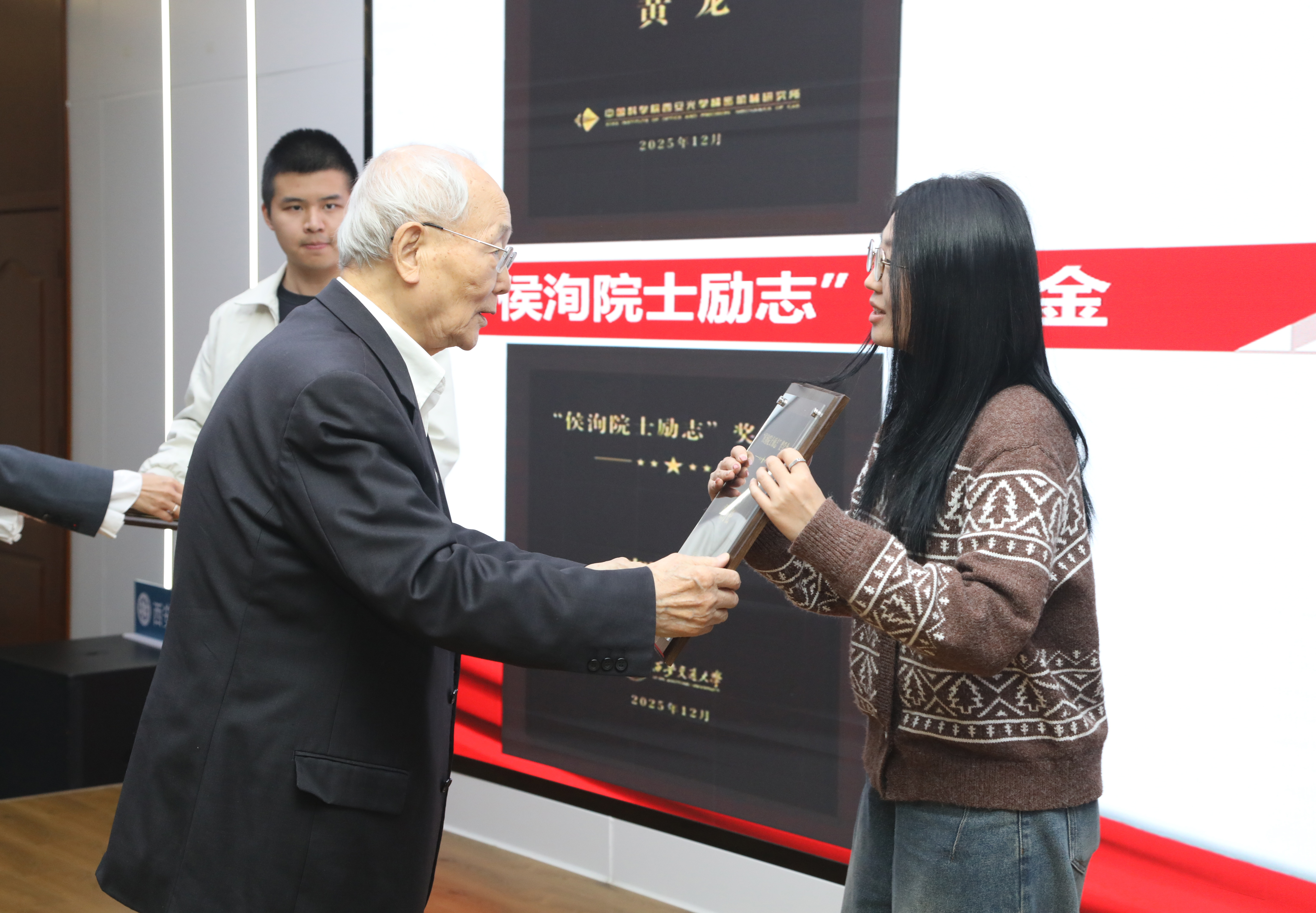 圖 侯洵院士為“超快科學獎學金”“侯洵院士勵志獎學金”獲獎學生頒獎